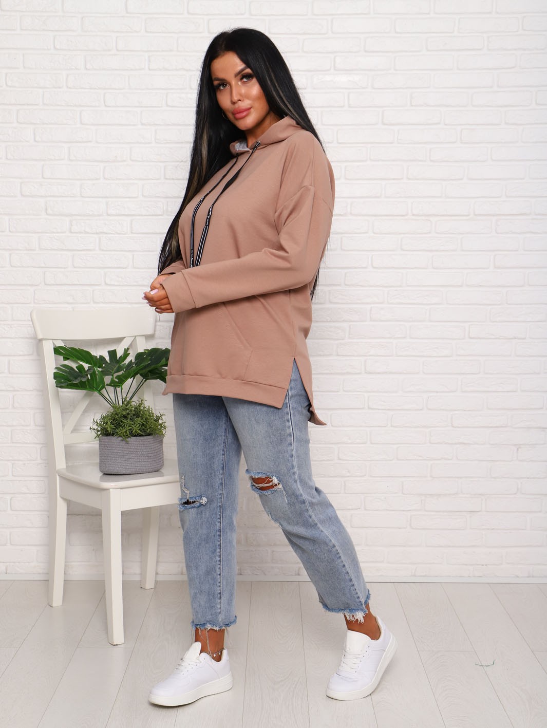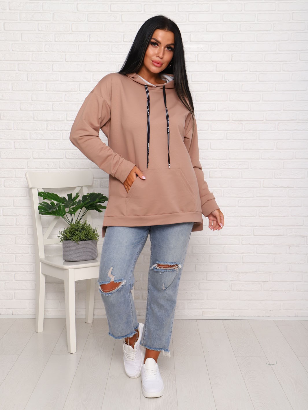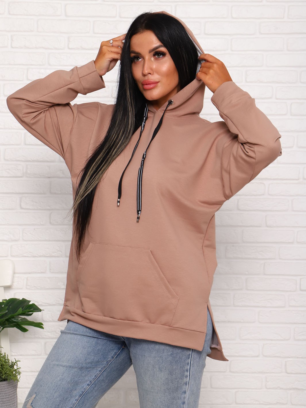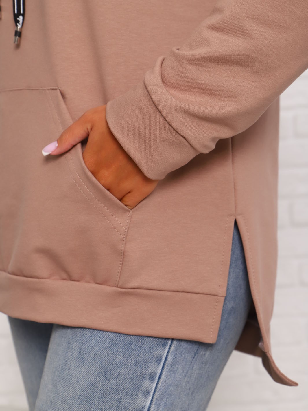 Толстовка с капюшоном, футер с лайкрой, бежевый (944-2)