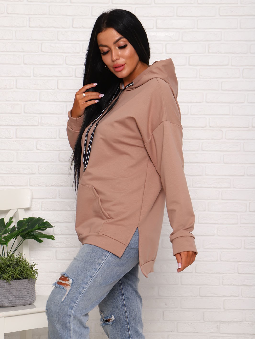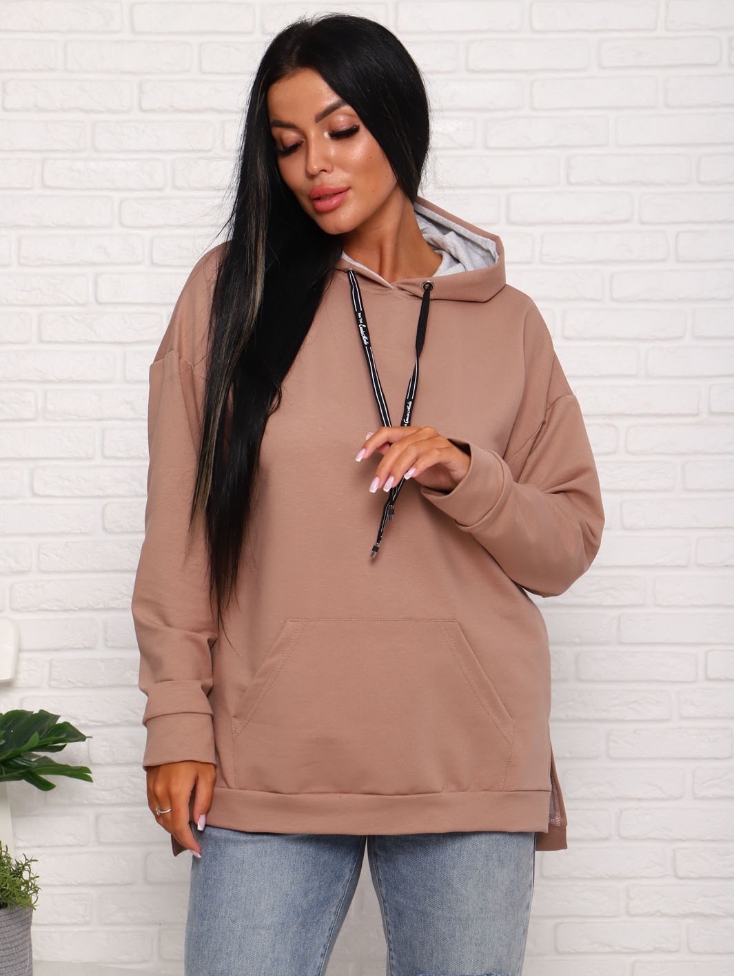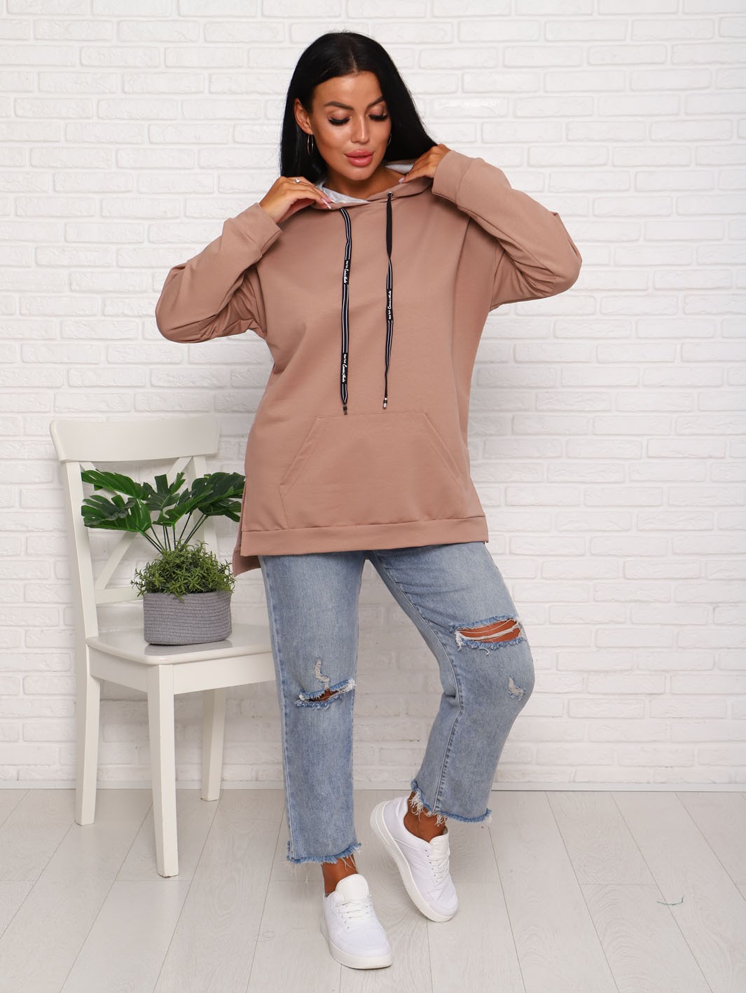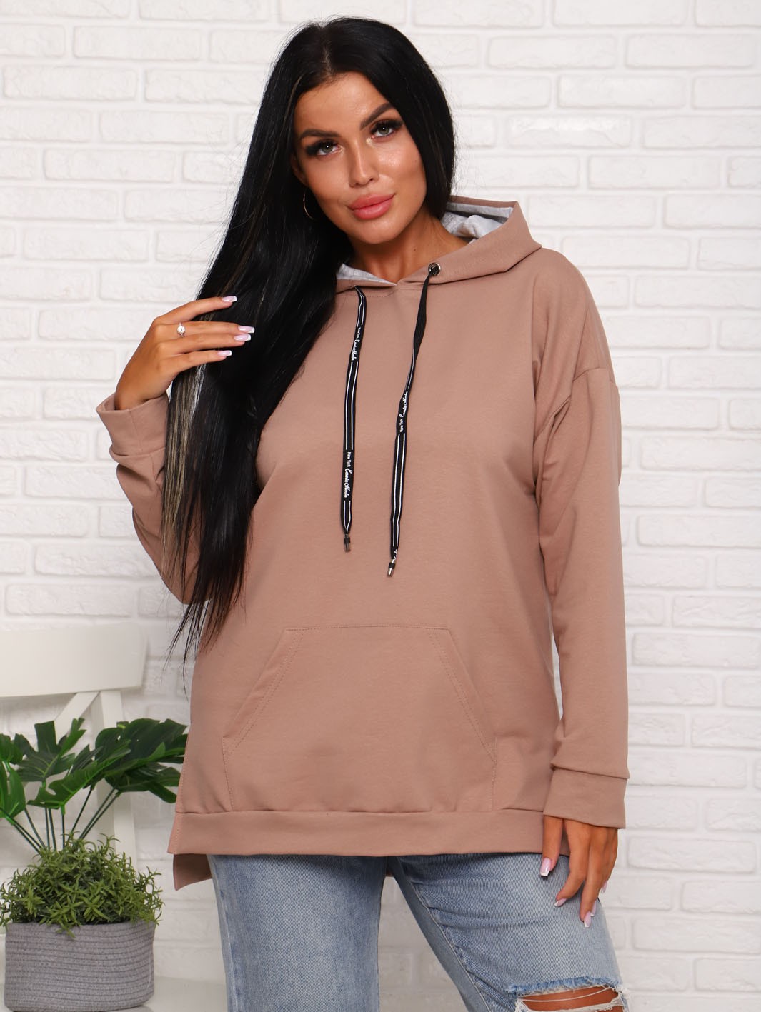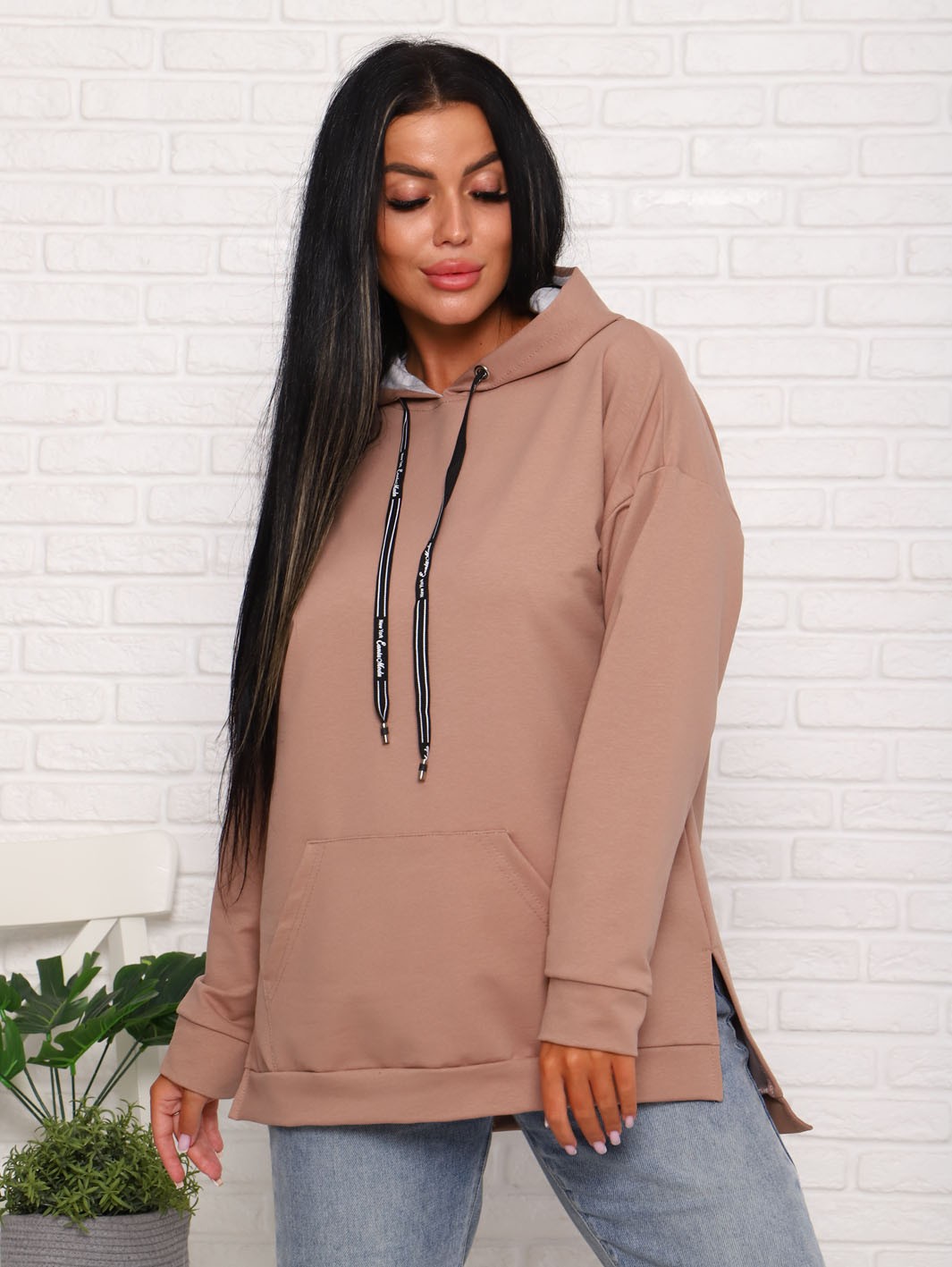 Толстовка с капюшоном, футер с лайкрой, бежевый (944-2)